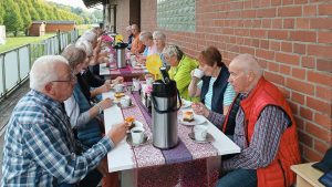 Einige Heimatfreunde, die nicht so gut mehr zu Fuß sind, waren dorthin auch noch gekommen, so dass insgesamt gut 20 Heimatfreunde hier zum Kaffee-Trinken und Kuchen-Essen in gemütlicher Runde versammelt waren. Und dabei gab es viel zu erzählen, denn die gesellige Runde wird immer sehr geschätzt.